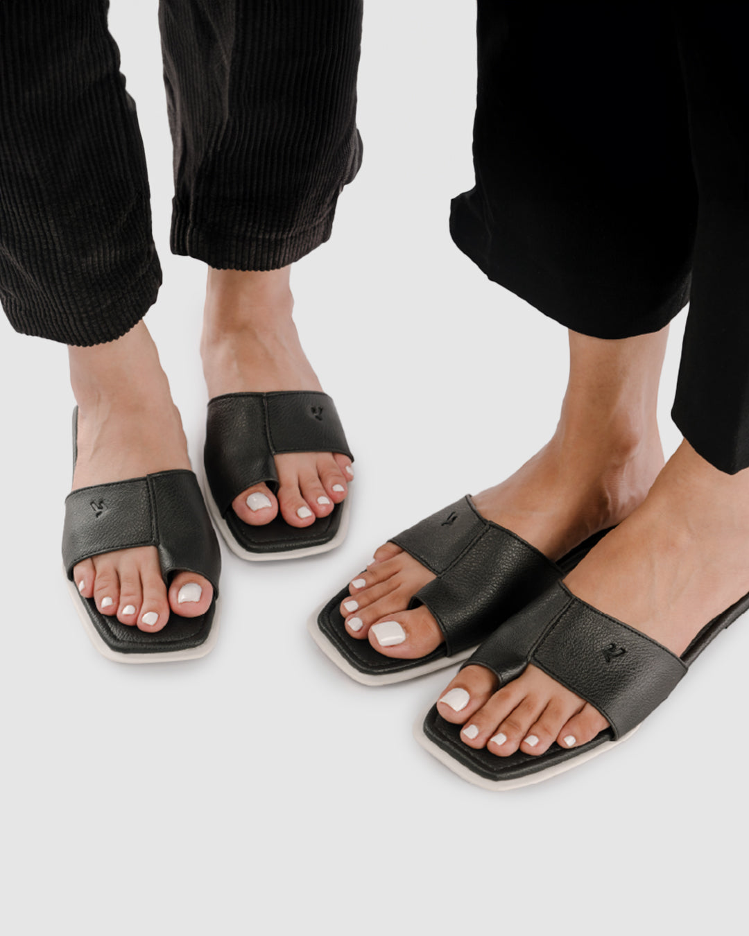 Basic toe separation slides with comforatable soles and monchrome hints.